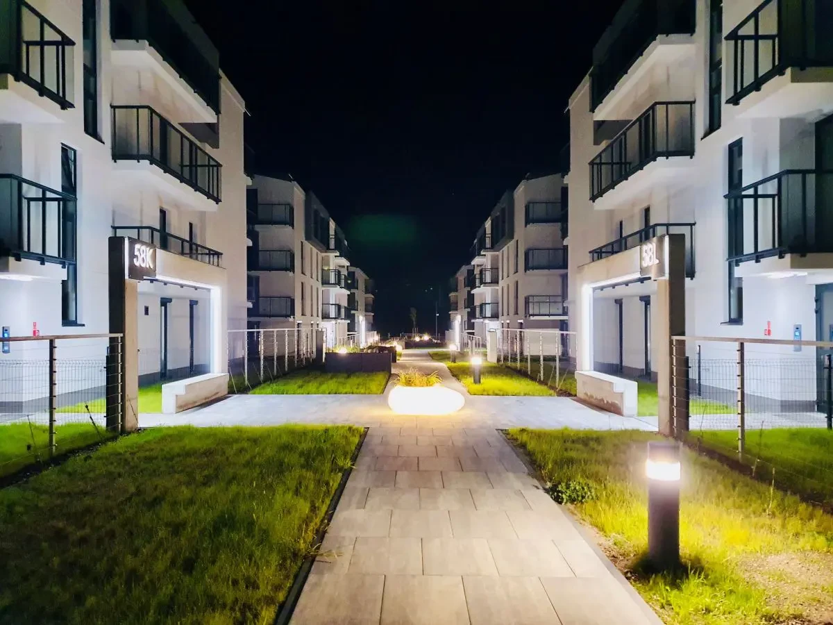 Osiedle zostało zaprojektowane z myślą o codziennym komforcie mieszkańców. Na jego terenie powstała zielona strefa rekreacyjna z alejkami spacerowymi, elementami małej architektury oraz placem zabaw, stanowiąca przyjazną przestrzeń do odpoczynku i spotkań sąsiedzkich. Architektura budynków utrzymana jest w nowoczesnej, stonowanej stylistyce z dużymi przeszkleniami, balkonami i ogródkami przypisanymi do mieszkań na parterze.