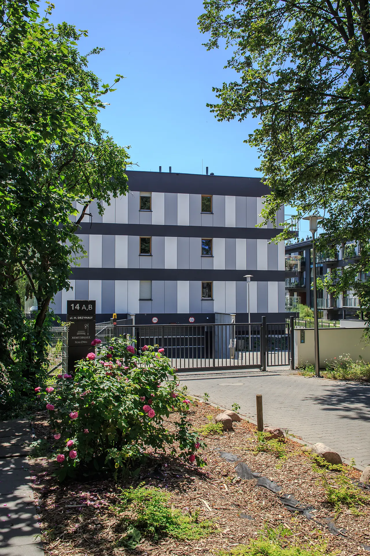 Realizacja inwestycji przy ul. Drzymały rozpoczęła się w I kwartale 2019 roku a zakończyła w III kwartale 2021 roku. Kameralny budynek składa się z trzech kondygnacji na których rozlokowaliśmy 60 lokali o powierzchni od 42 m2 do 67 m2. Inwestycja wyróżnia się starannie zaprojektowanymi, funkcjonalnymi układami mieszkań. Do wszystkich lokali przynależą balkony. Pod budynkiem znajduje się hala z 52 miejscami postojowymi i stojakami na rowery. W budynku zaprojektowano dwie klatki schodowe oraz windy, które poruszają się na poziomach od -1 do 2. Na terenie nowej inwestycji mieszkaniowej znajdują się naziemne miejsca postojowe oraz stojaki na rowery.