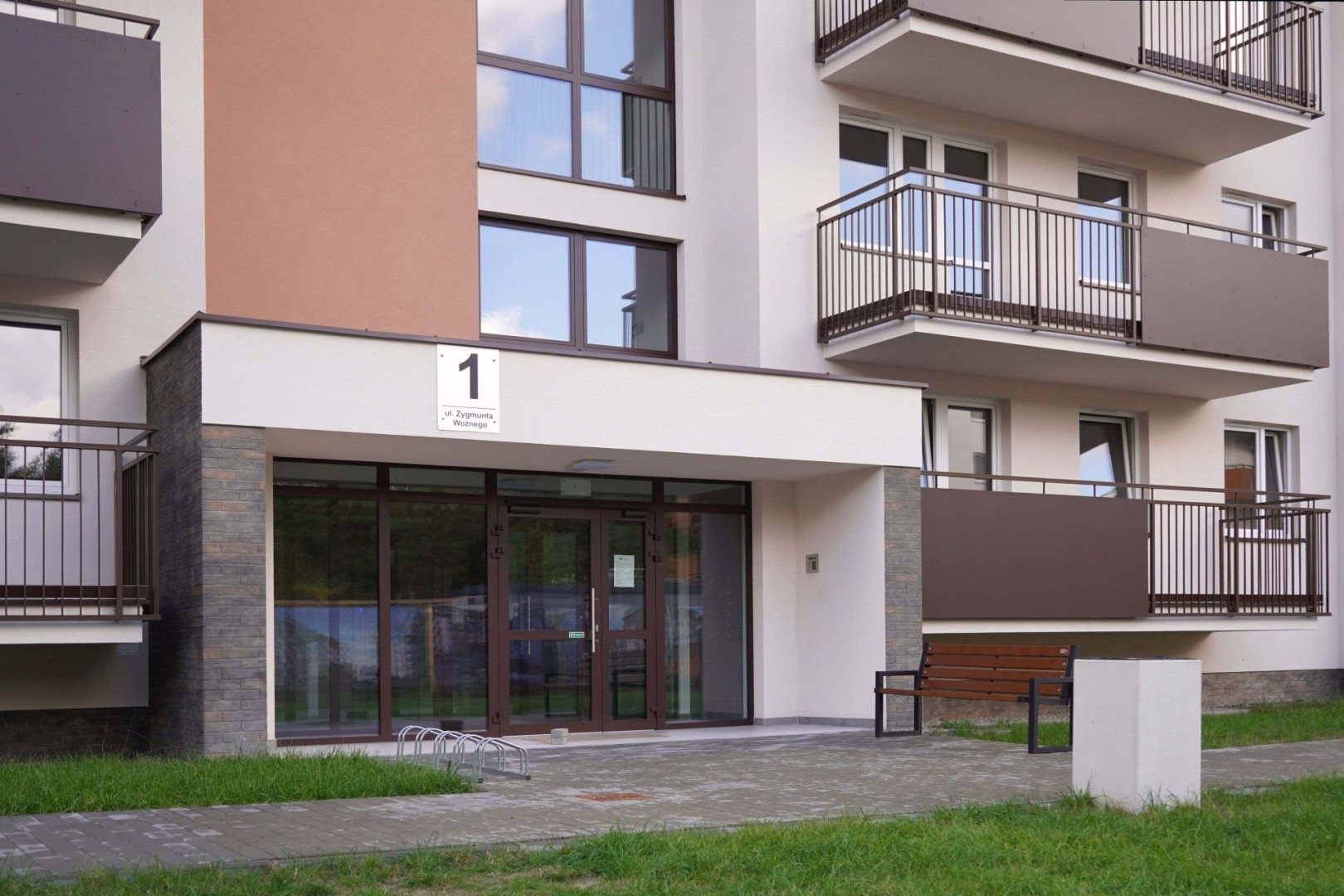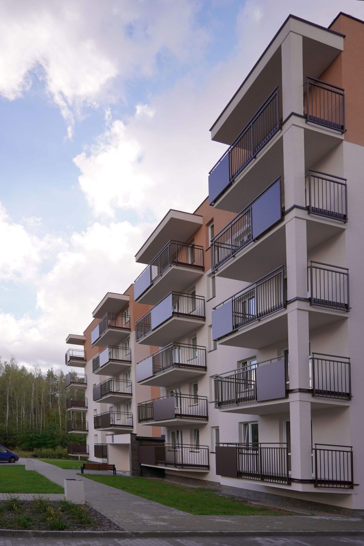 Mieszkanie w standardzie deweloperskim obejmuje: okna PCV z nawiewnikami, drzwi balkonowe przeszklone, drzwi wejściowe klasy RCIII z wizjerem i progiem, parapety zewnętrzne i wewnętrzne, instalacje: wodno-kanalizacyjną doprowadzoną do punktów przyłączy, wentylację mechaniczną, ogrzewanie centralne z grzejnikami i grzejnikiem drabinkowym w łazience, instalację elektryczną z gniazdkami, wyłącznikami i zasilaniem trójfazowym do kuchenki, instalację teletechniczną i domofon, ściany działowe, tynki gipsowe i posadzki cementowe. Balkony wyposażone w tzw. „bezfugowy” system posadzek zewnętrznych pozwalający na bezkolizyjne odprowadzenie wód opadowych i redukcję ewentualnych zastoin.