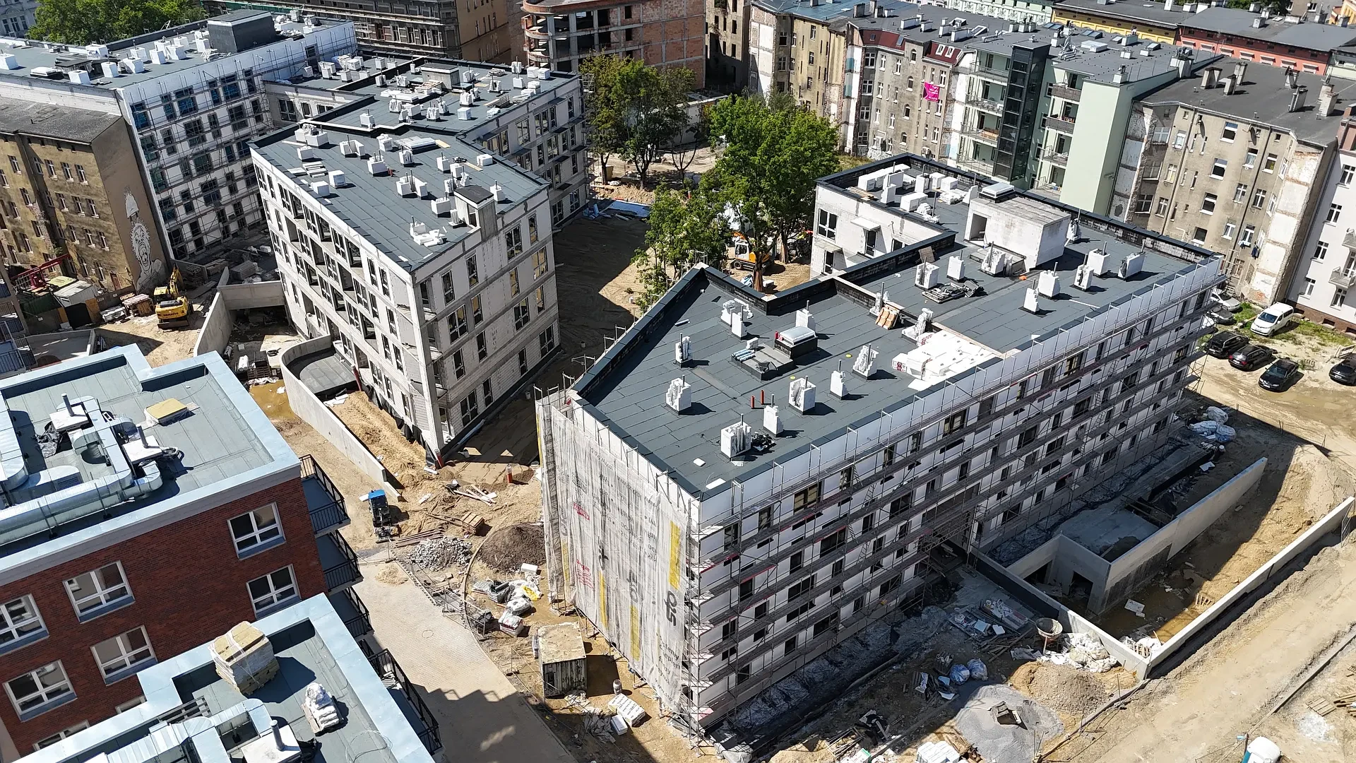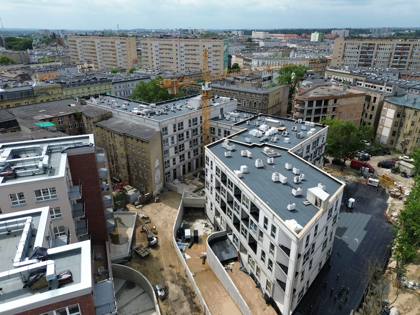 Zaprojektowany zespół budynków składa się z dwóch budynków usługowo-mieszkalnych oznaczony w projekcie jako budynki B1 oraz B2. Budynek B1 posiada zróżnicowaną ilość kondygnacji nadziemnych tj. 5 kondygnacji od strony ul. Bałuki i 4 kondygnacje w części pozostałej. Budynek B2 natomiast posiada stałą ilość kondygnacji nadziemnych tj. 4 kondygnacje. Oba budynki posiadają również kondygnację podziemną.