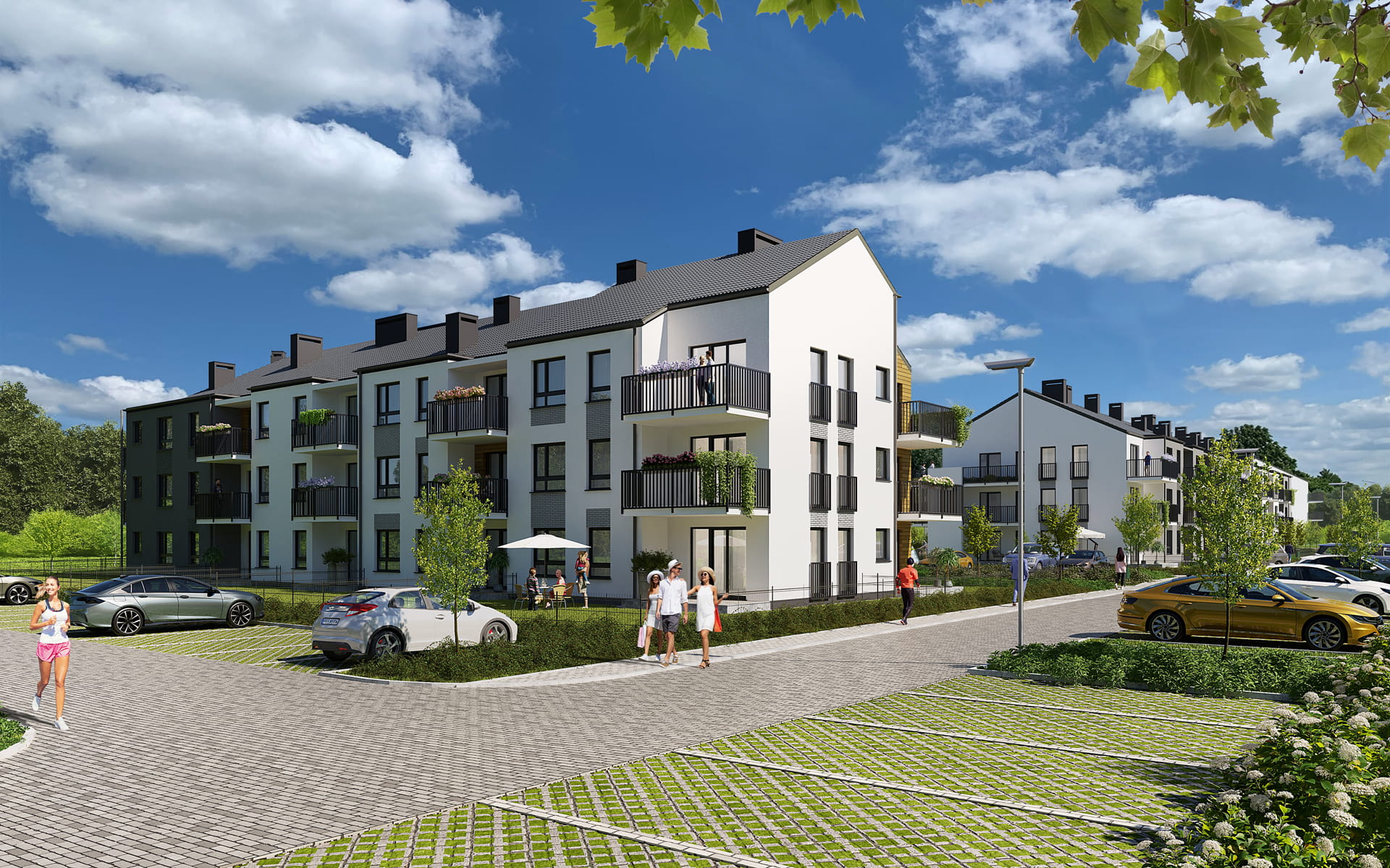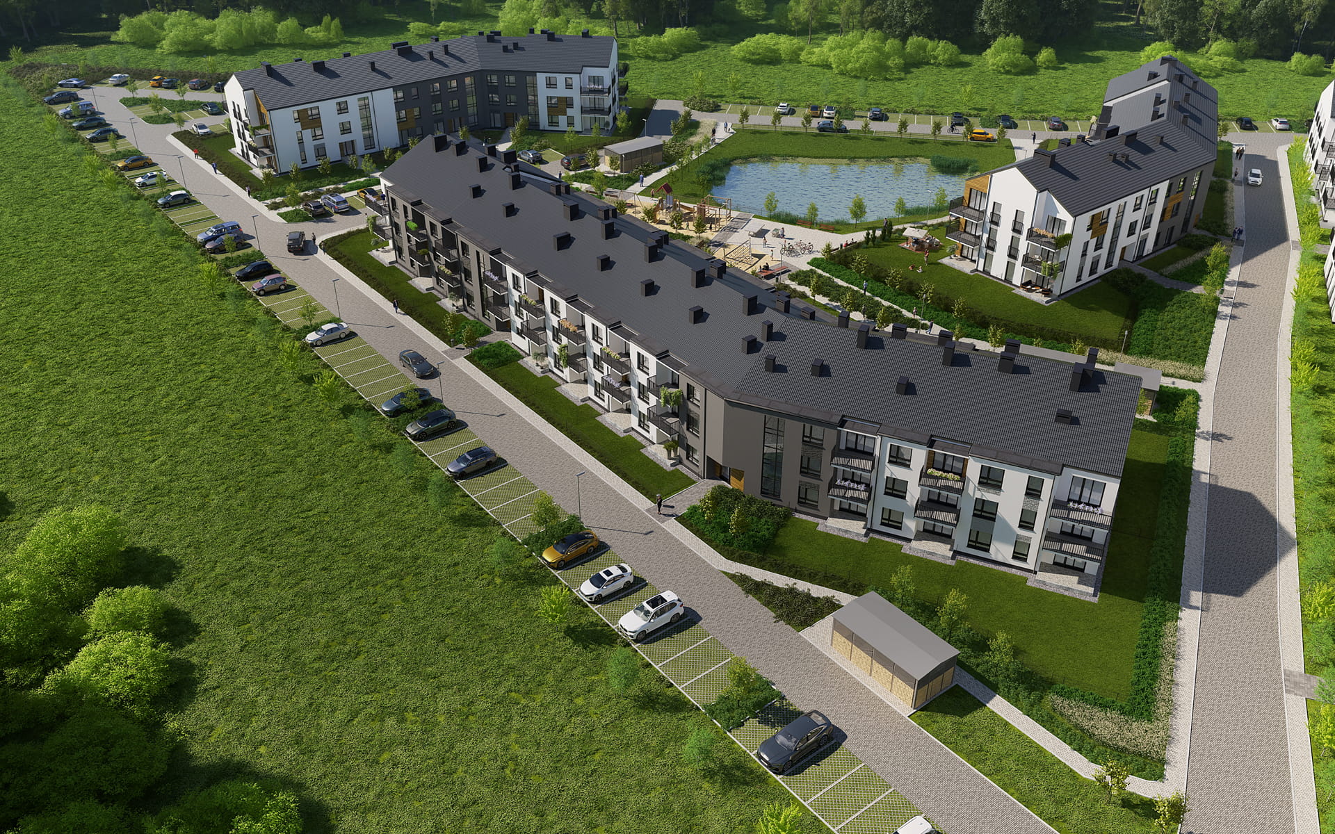 Powstałe budynki mieszkalne charakteryzują się kameralną zabudową i są otoczone zielenią w spokojnej okolicy. Prywatne ogródki aż do 220 m2, przestronne tarasy i balkony – tu każdy znajdzie swoją strefę relaksu. Zagospodarowana zieleń, plac zabaw oraz zbiornik wodny tworzą miejsce, gdzie codzienność staje się przyjemnością.