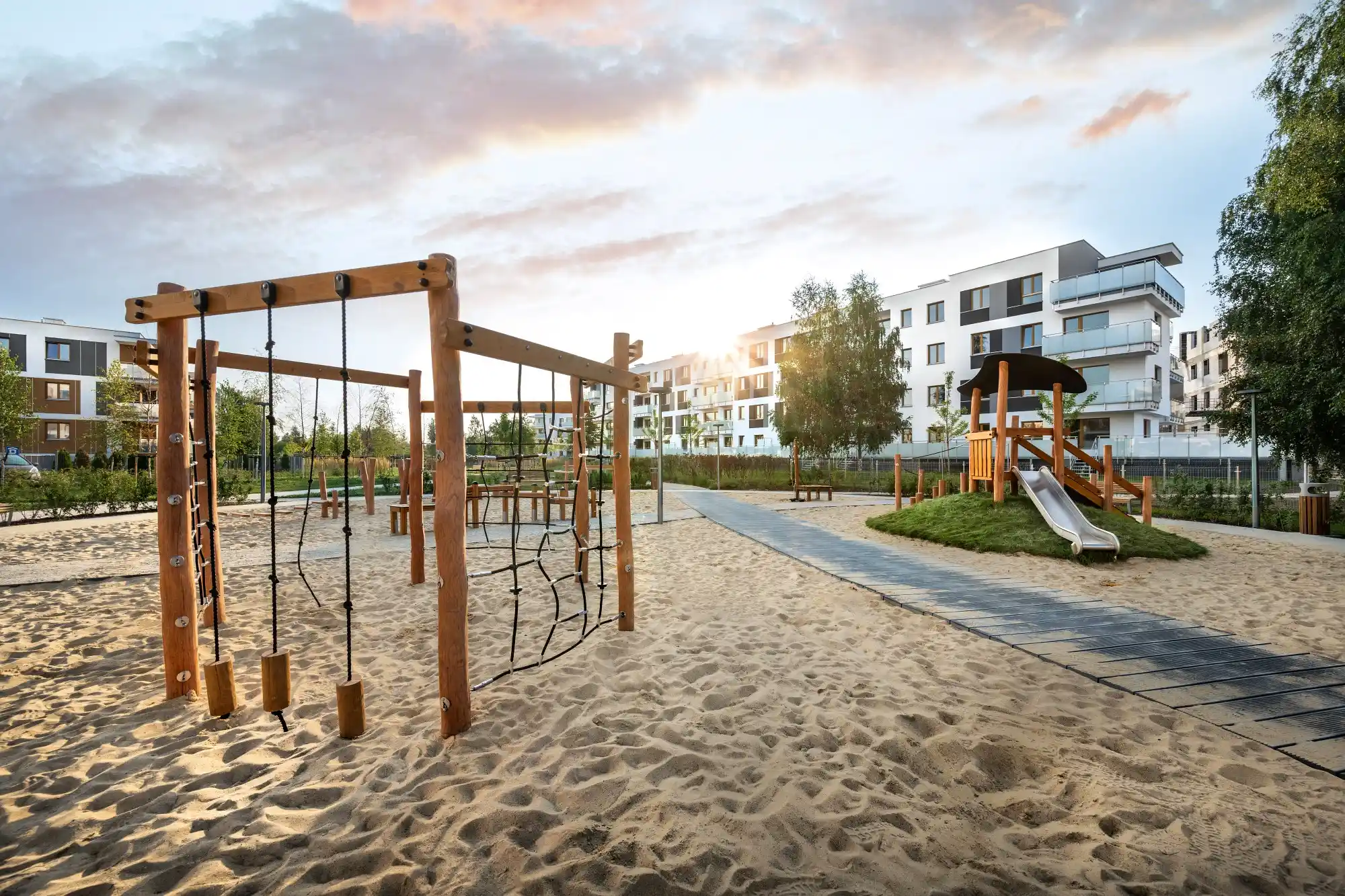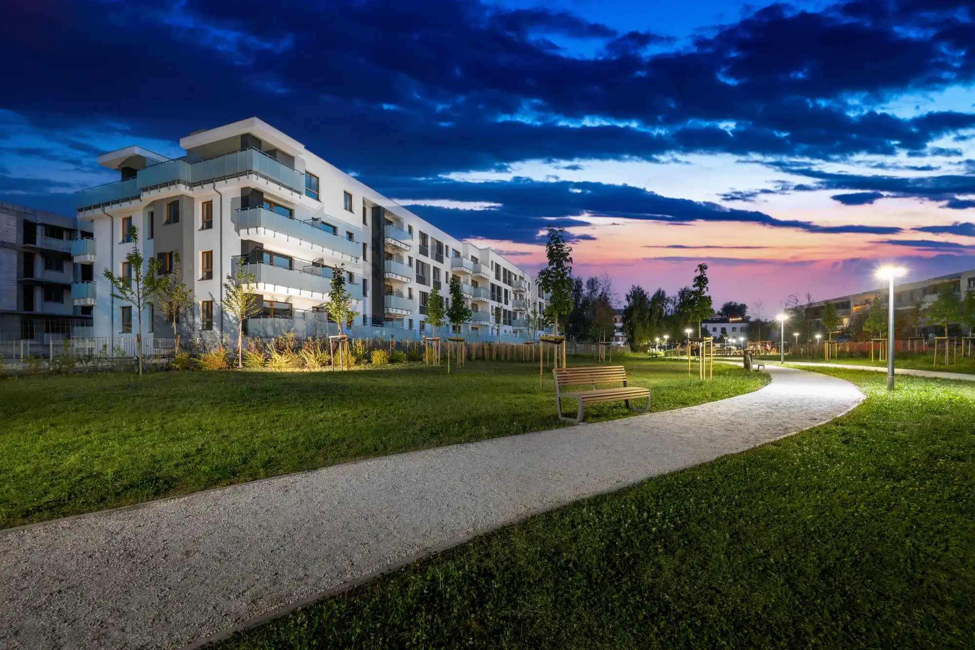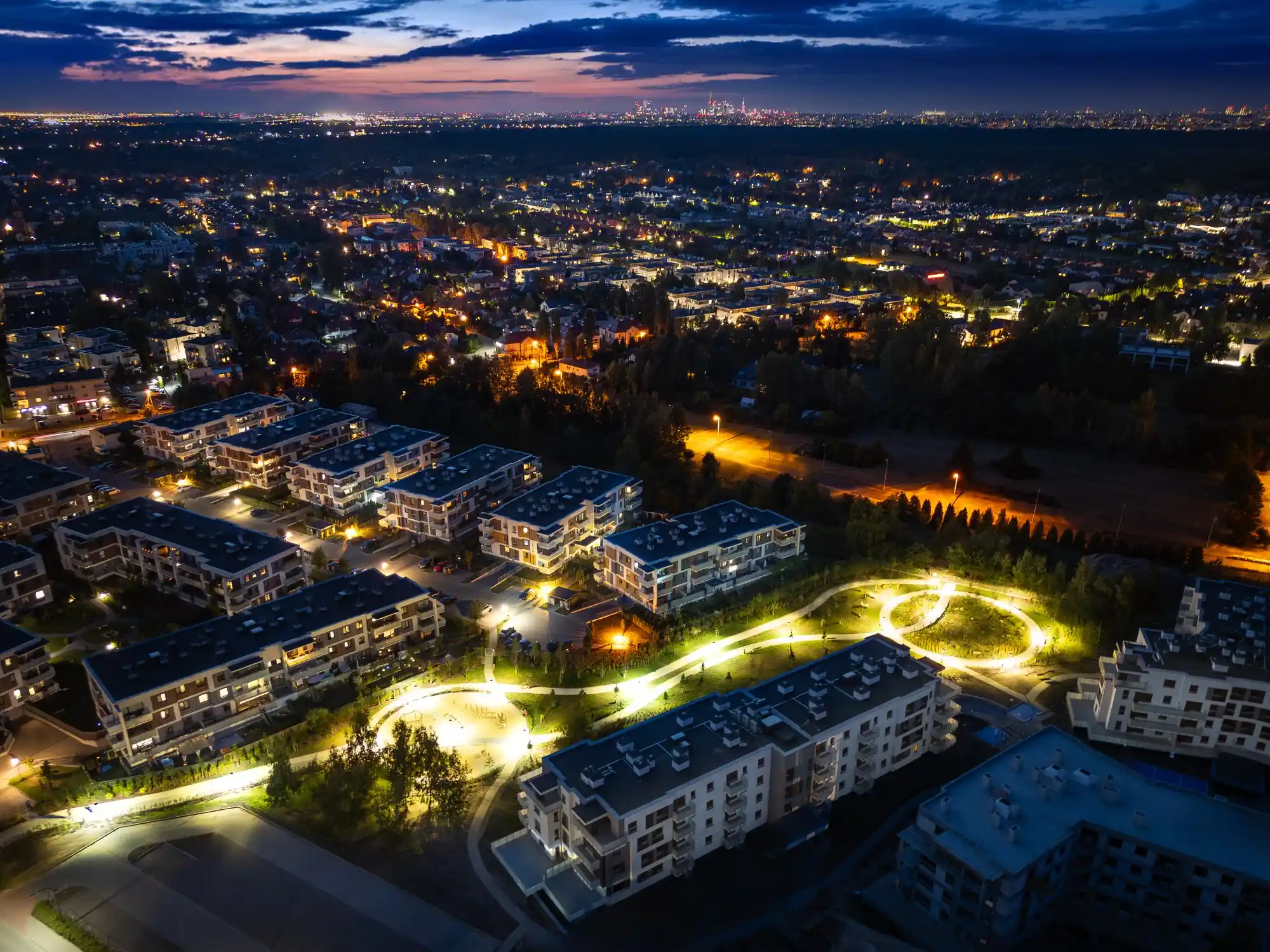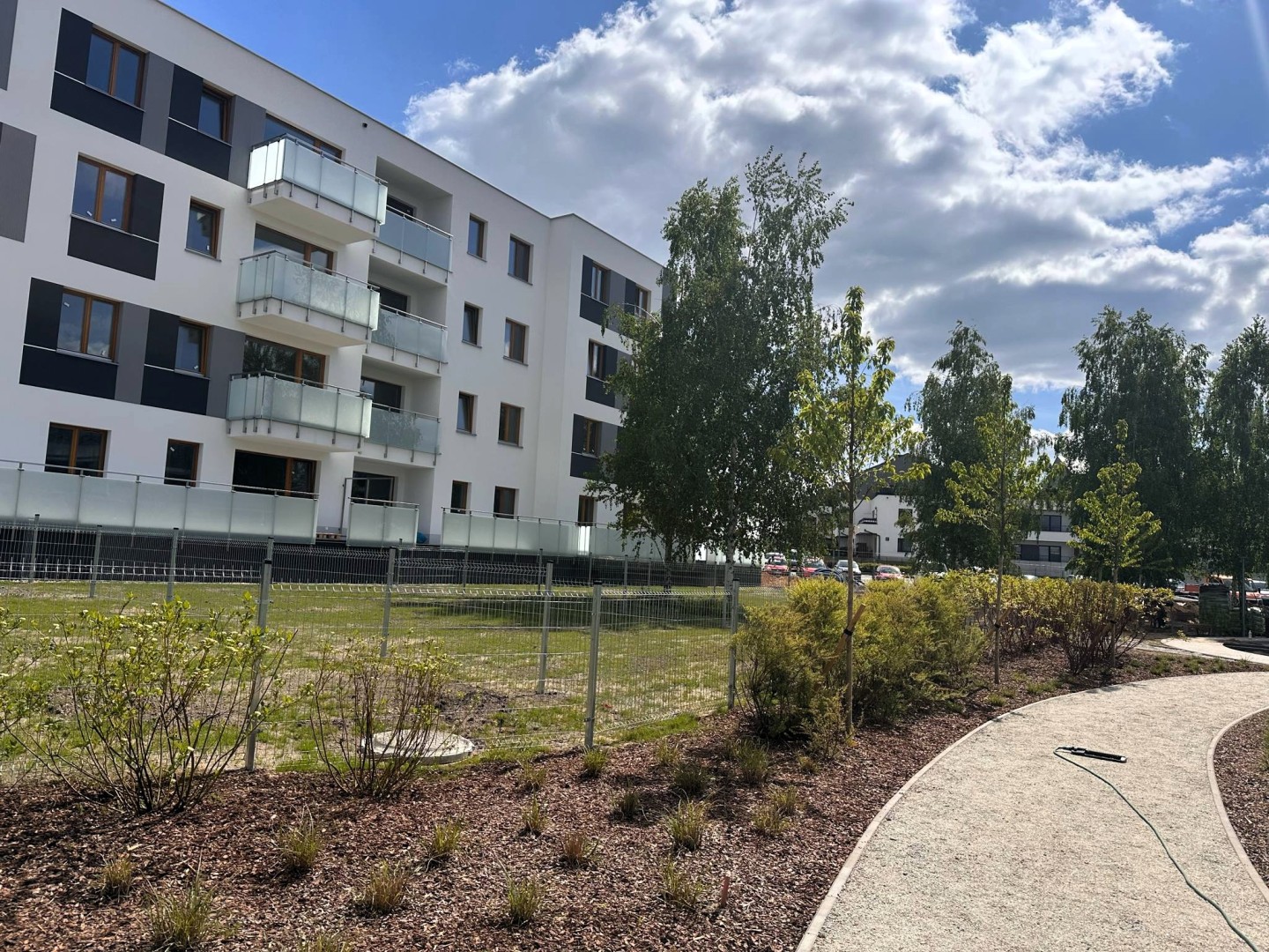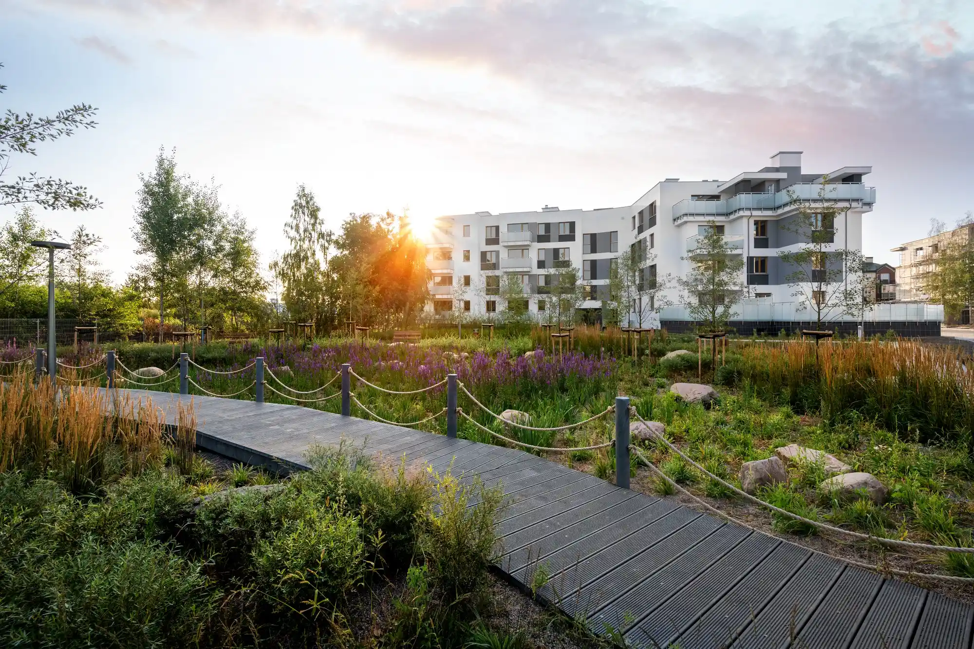 Szczególnym atutem osiedla jest bezpośrednie sąsiedztwo nowego parku – miejsca stworzonego z myślą o odpoczynku i rekreacji. Znajduje się tam nowoczesny plac zabaw, leżanki, ławki oraz bogata, zróżnicowana roślinność: drzewa, krzewy, trawy ozdobne i ogród wilgociolubny. Osoby ceniące kontakt z przyrodą docenią też możliwość spacerów do pobliskiego Lasu Kabackiego, oddalonego zaledwie o 15 minut.