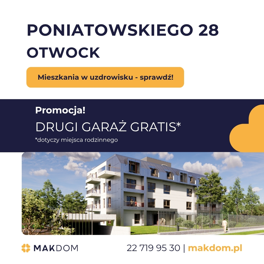 Poniatowskiego 28 to kameralny 3-piętrowy budynek z windą i garażem podziemnym, świetnie wpisujący się w willową zabudowę ulicy Poniatowskiego, zlokalizowany w pobliżu Parku Miejskiego i centrum miasta Otwocka. Wyjątkowy, stylowy i w pełni zintegrowany z otoczeniem projekt zakłada 30 mieszkań 2, 3 i 4 -pokojowych o powierzchniach od 27 do 81 m2.