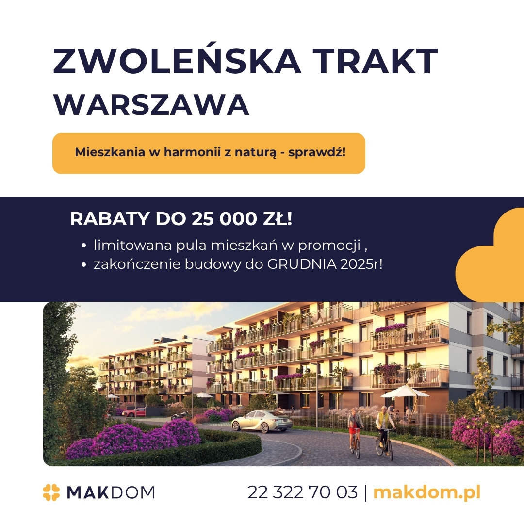 Osiedle Zwoleńska Trakt realizowane w dzielnicy Wawer słynącej z dużej ilości zieleni i bliskości terenów rekreacyjnych, składa się z dwóch kameralnych, trzypiętrowych budynków zaprojektowanych z myślą o komforcie mieszkańców - windy obsługują wszystkie piętra łącznie z garażem podziemnym, a w częściach wspólnych osiedla zaprojektowano również naziemne miejsca postojowe i plac zabaw dla dzieci.